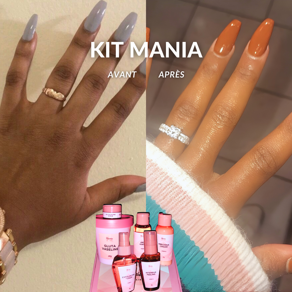 Notre coffret Mania mains pieds hautement concentrée [3.5%] en Vitamine C + Glutathione + Acide Salicylique, pour un résultat rapide contre les tâches brunes.